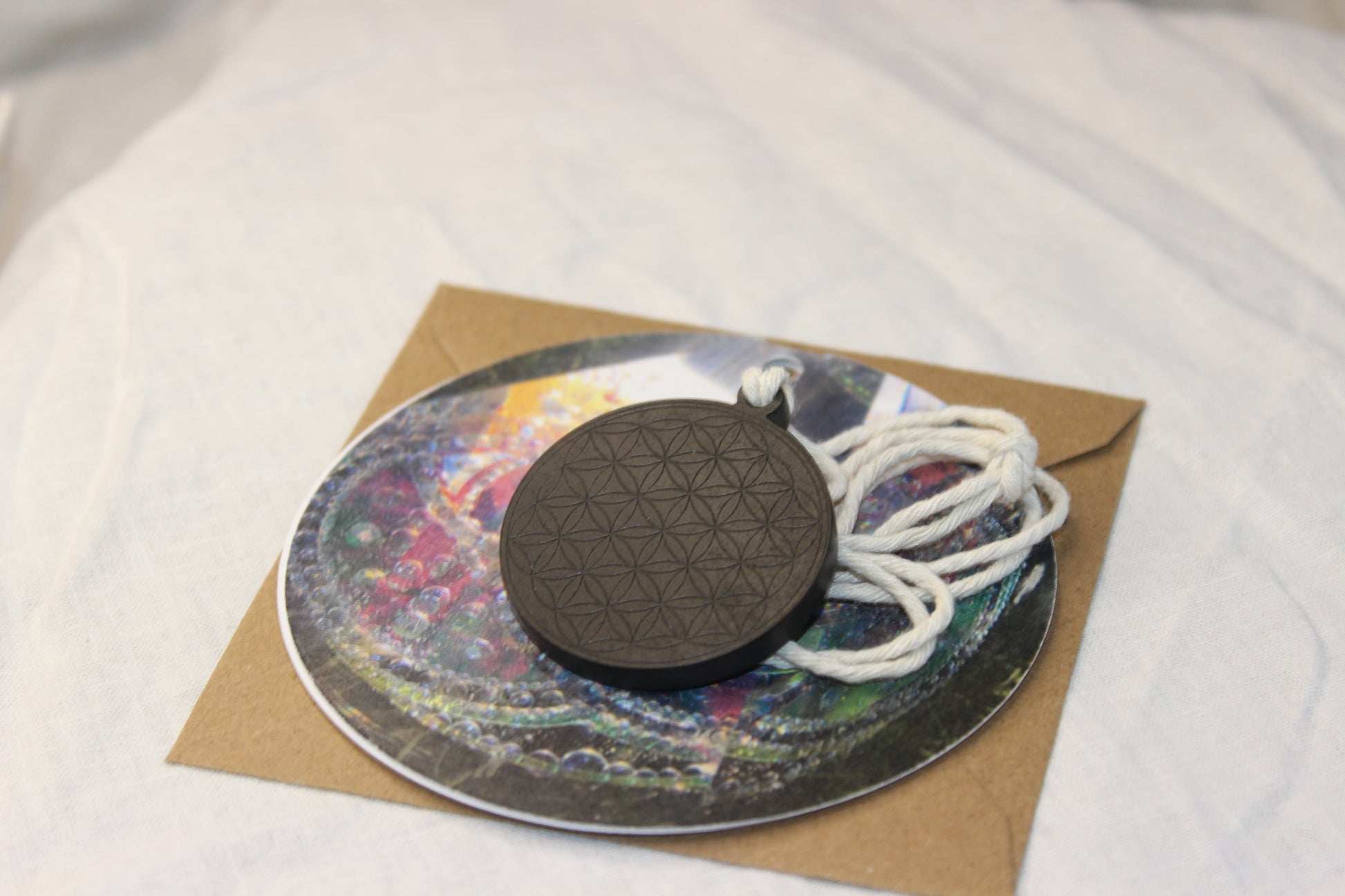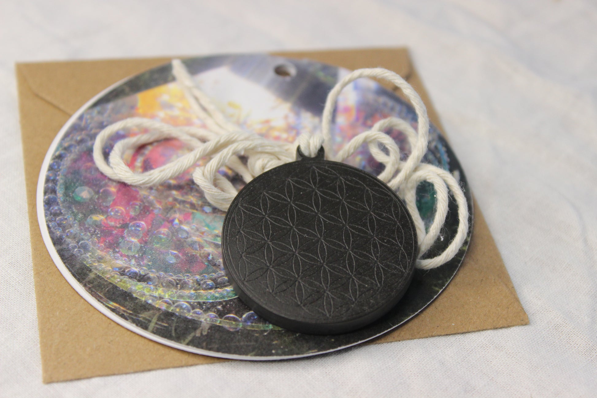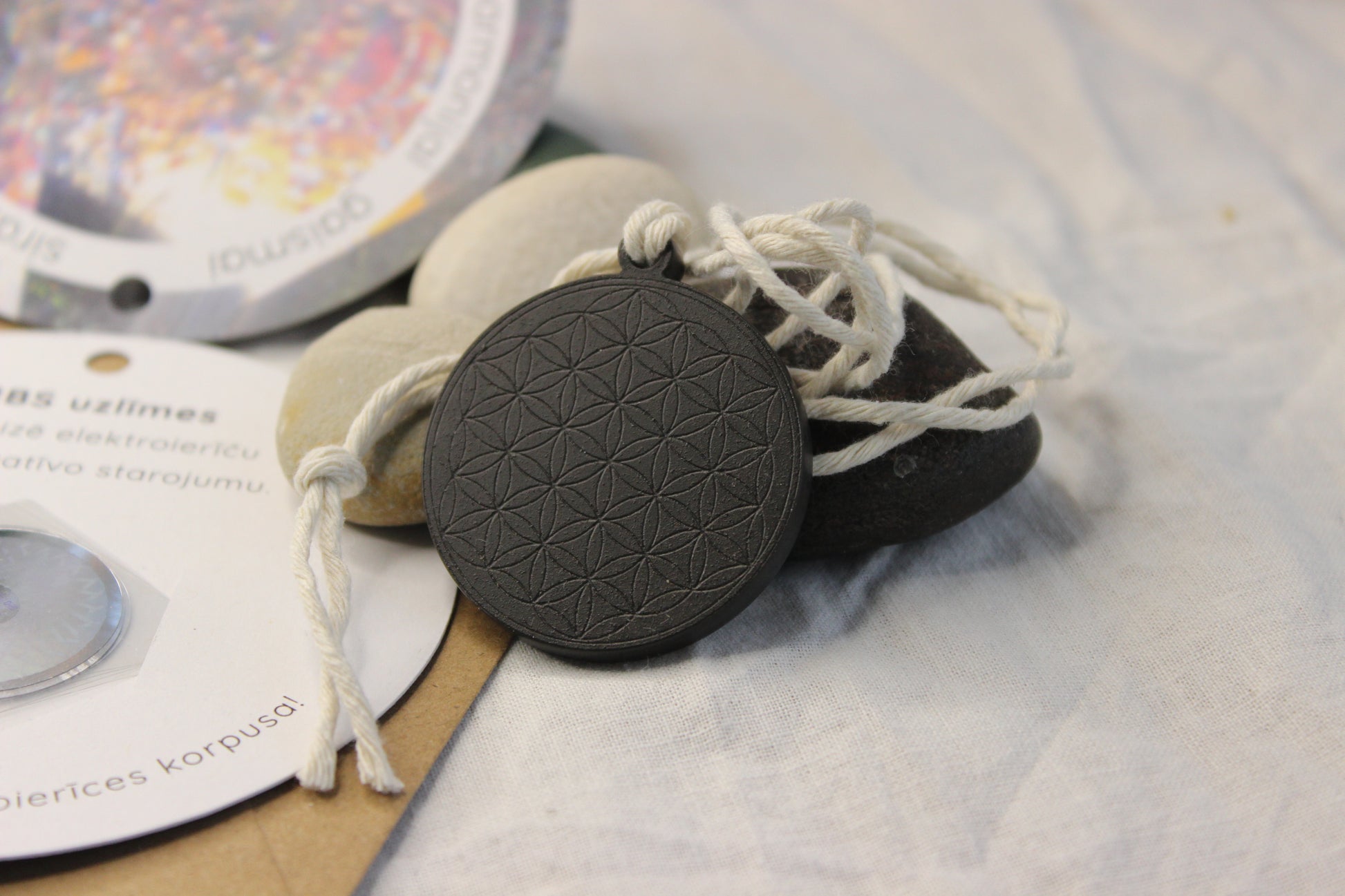 Paramagnētisks Bazalta amulets ar Dzīvības ziedu - hologrāfisks visuma kristāliskā režģa 2D atspoguļojums, ietver sevī dzīvības kodu, kā arī bināro un trināro progresiju.